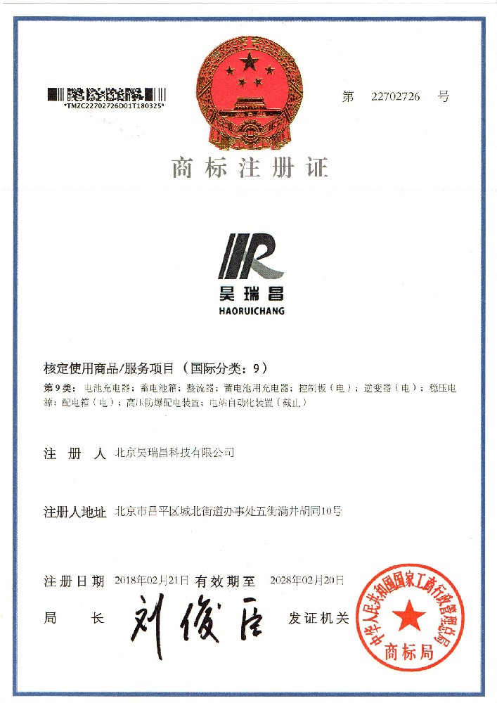 北京昊瑞昌科技有限公司是一家集科、工、贸一体的高科技企业。公司拥有国内一流的设计研发团队,所设计研发产品技术水平国内领先,获得国军标质量管理体系认证、环境管理体系认证、职业健康安全管理体系认证、属于国家高新技术企业、中关村高新技术企业、新技术新产品企业、科技型企业、创新型企业、AAA信用企业、北京市知识产权试点单位,公司产品通过多个权威检测认证。拥有多项专利和软件著作权,专业生产蓄电池充电机、充电···