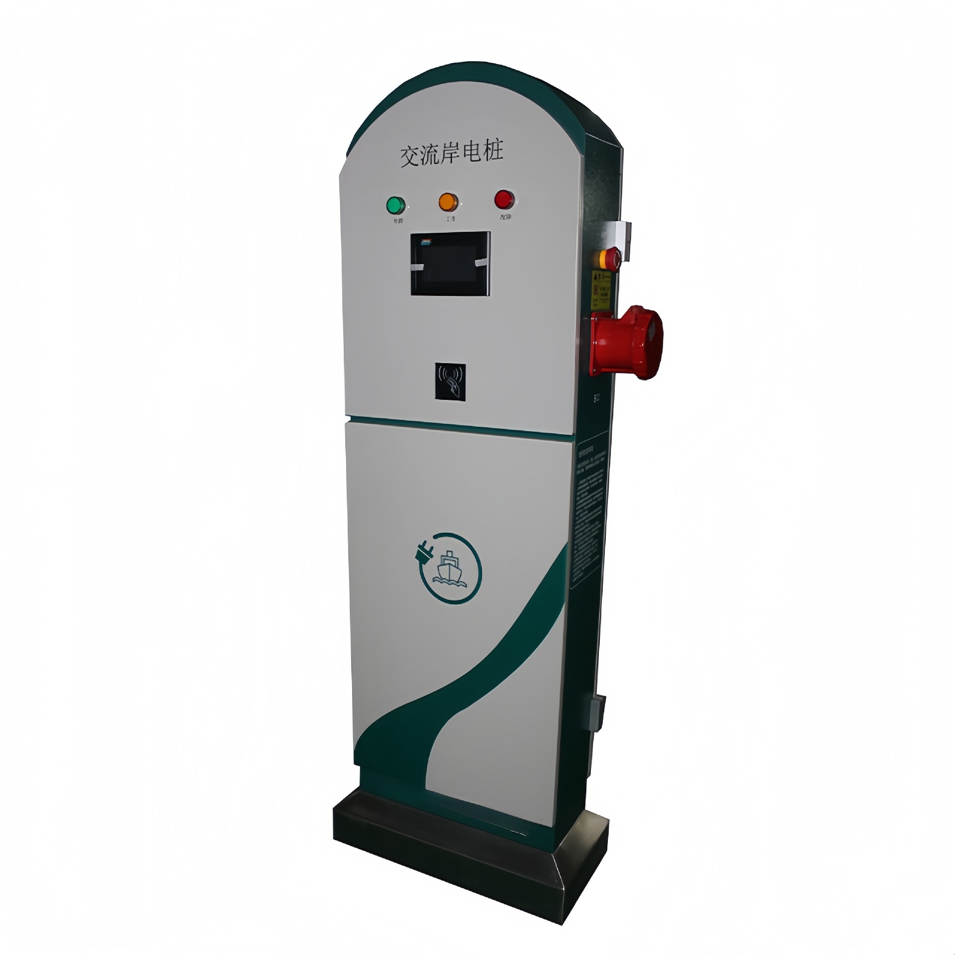40KW(380V63A)单路岸电桩供电系统简单,占地面积小,安装于码头,港口,港口服务区等场所,具有更高的防护等级(整机出厂前进行三次三防处理),船舶在港口码头靠泊期间可通过岸电桩进行供电使用,替代传统的燃油发电,岸电桩作为一种气体排放抑制的手段,使用操作简便、无噪音,岸电桩不仅能实现船舶到港作业的零污染、零排放,有效降低我国沿海地区大气污染零排放,还对引领国内水运作业能源结构调整、大气污染防治有重要的示范意义。